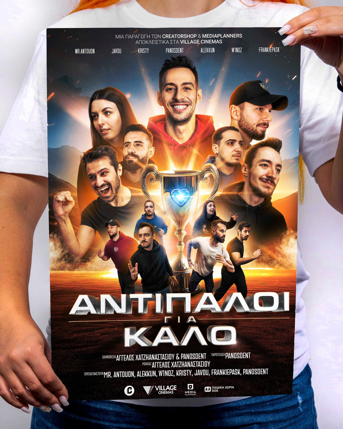 Η επίσημη αφίσα της ταινίας Αντίπαλοι για Καλό — η παραγωγή που ένωσε τους μεγαλύτερους Έλληνες creators σε μία μοναδική ιστορία συνεργασίας, έντασης και αληθινών συναισθημάτων.