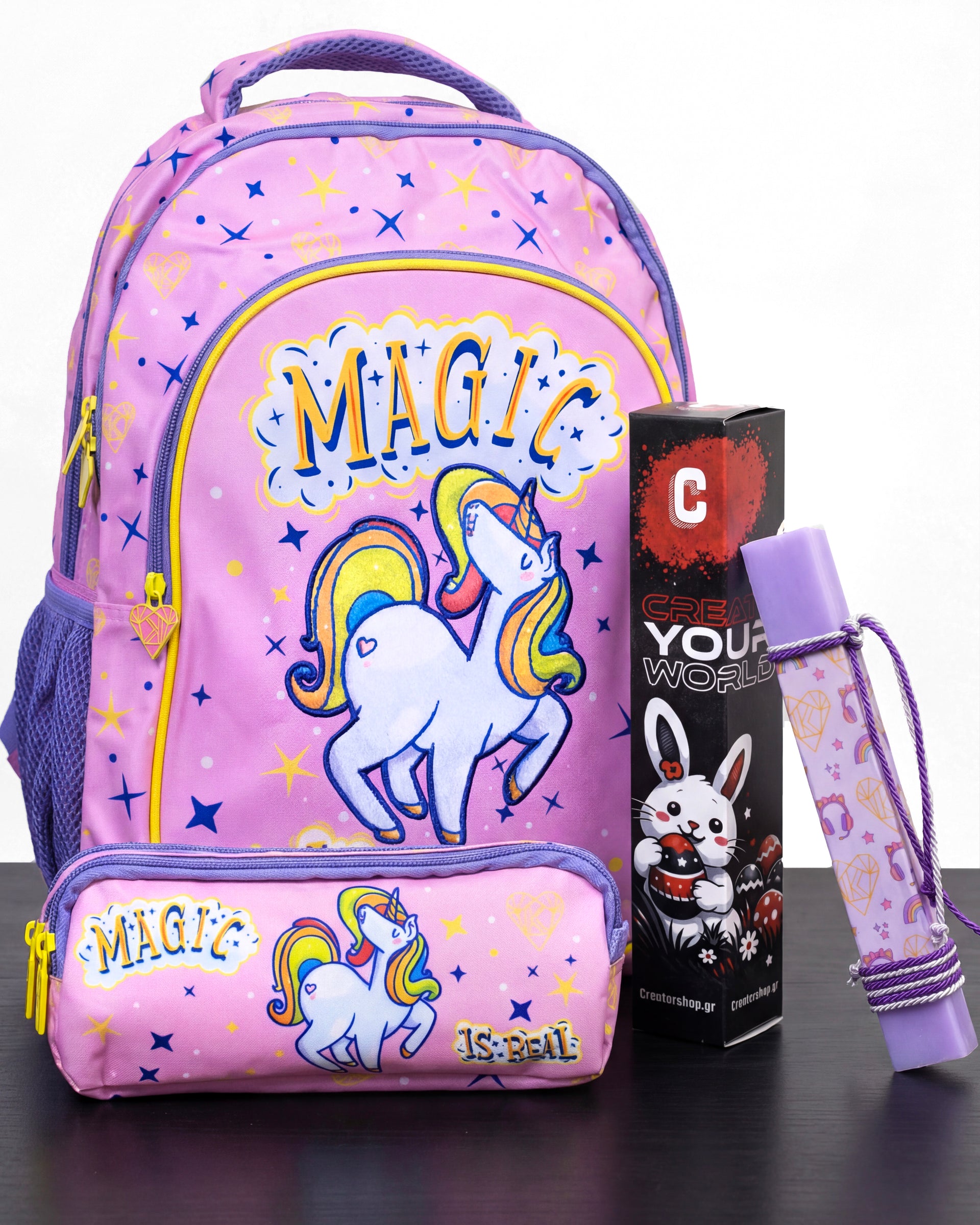 Το πακέτο περιλαμβάνει:• Πασχαλινή Λαμπάδα Konstantina• Τσάντα “Magic Is Real” Konstantina• Κασετίνα “Magic Is Real” Konstantina